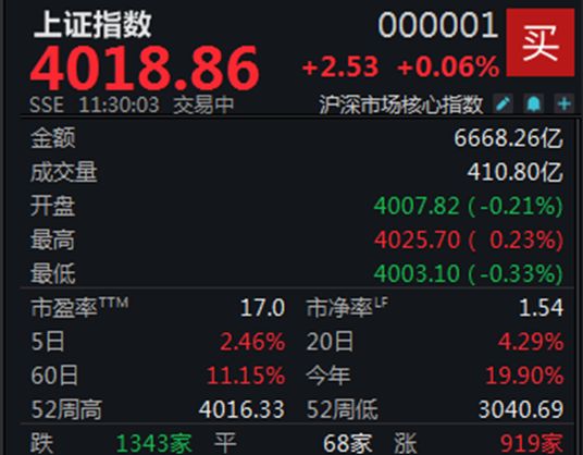0每经记者|刘明涛 每经编辑|赵云 10月30日,A股窄幅整理,上证指数午盘涨0.06%报4018.86点,深证成指跌0.02%,创业板指跌0.23%,沪深300涨0.13%,北证50涨2.05%,科创50跌0.42%,中证A500涨0.04% ...