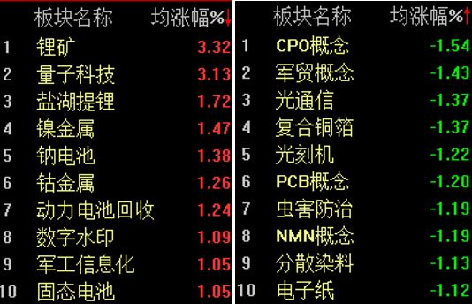 资金面,央行公告称,10月30日以固定利率、数量招标方式开展了3426亿元7天期逆回购操作,操作利率1.40%,投标量3426亿元,中标量3426亿元。Wind数据显示,当日2125亿元逆回购到期,据此计算,单日净投放1301亿元。 消息面,近日,国家药监局药审中心组织制定并发布《创新药研发中涉及适老化设计时的一般原则及考虑要点(试行)》。该文件旨在完全实施ICH E7的前提下,提出创新药研发中的适老化设计考虑,指导在药物设计和开发、临床试验实施和上市后监测等过程中充分考虑老年患者需求,关注老年患者体验和偏好,进而推动适宜产品的开发,改善老年患者的用药体验,减少用药差错,提升老年患者的整体健康水平。 北京证监局联合市委金融办等六部门出台《北京市推动中长期资金入市的实施意见》,提出优化市场生态、发展权益类公募及私募基金、优化保险和养老金权益投资政策环境、鼓励银行理财和信托资金参与资本市场等举措。 板块方面,锂电池产业链爆发,天际股份、石大胜华、鹏辉能源等多股涨停。量子科技概念再度走强,神州信息涨停,纬德信息、国盾量子、禾信仪器、科大国创等跟涨。