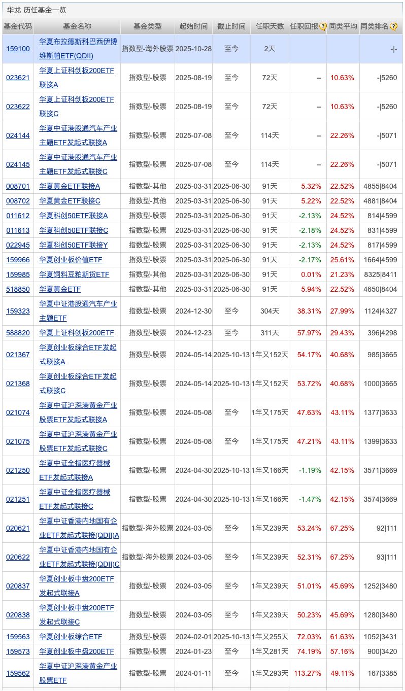 2、ETF主题机会 2025年以来,固态电池技术持续获突破,多家车企计划于2027年左右开始搭载全固态电池,行业产业化进程加快。随着中试线的陆续落地以及锂电扩产周期的重启,设备企业基本面有望持续改善,继续看好产业周期与技术进步共振。可关注锂电池ETF等产品。 四、明日重点关注新发基金1、基金简称:华夏布拉德斯科巴西伊博维斯帕ETF(QDII) 基金类型:股票型证券投资基金(QDII) 基金经理:华龙 业绩比较基准:经估值汇率调整后的巴西伊博维斯帕指数收益率 基金经理过往业绩: