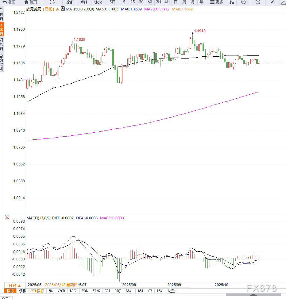 市场普遍预计,欧洲央行将在10月会议上维持主要再融资利率2.15%、边际贷款利率2.4%、存款利率2%不变。  分析人士普遍认为,欧洲央行在未来数月内维持观望的可能性较大。BBH分析师指出:“掉期市场目前仅定价未来12个月内再降息一次的概率约为50%,预计政策利率底部在1.75%。” TD Securities也认为:“尽管增长在年末有所放缓,但欧洲央行仍倾向维持当前立场,只有在外部风险扩大时才会考虑行动。”这意味着央行或在2025年3月前保持政策不变。 EUR/USD汇价在欧洲央行决议前维持在1.1650下方区间波动,受制于美元强势与法国政治不确定性。法国议会的预算谈判僵局增加了欧元区内部的不稳定性,也对欧元构成轻微拖累。 若拉加德重申“通胀目标已达成、政策处于理想状态”,市场可能解读为降息周期已暂停,从而提振欧元短线反弹。 相反,若其暗示担忧经济增长乏力或外部风险上升,则可能引发新一轮抛压。 从技术角度看,EUR/USD在1.1638(21日均线)下方承压运行,14日RSI指标仍低于50,显示短线偏空格局未改。若跌破1.1575支撑区,可能进一步下探至10月低点1.1542,甚至测试关键整数位1.1500。 上方阻力位于1.1670附近(100日与50日均线重叠区),若能突破,将为汇价重返1.1728及1.1800提供空间。整体来看,短期风险偏向下行,但下方支撑较强,或限制跌幅。  当前市场情绪较为谨慎,投资者普遍等待ECB会议结果及拉加德的措辞。短期内,EUR/USD可能继续在1.1500–1.1650区间震荡整理。若欧洲央行传递“长期停留在当前利率水平”的信号,欧元有望获得反弹动能。 但鉴于美联储仍偏鹰派、美国经济韧性较强,美元的强势或将压制欧元升幅。关注欧洲三季度GDP及后续通胀数据,这将决定欧元区政策转向的时机。   |