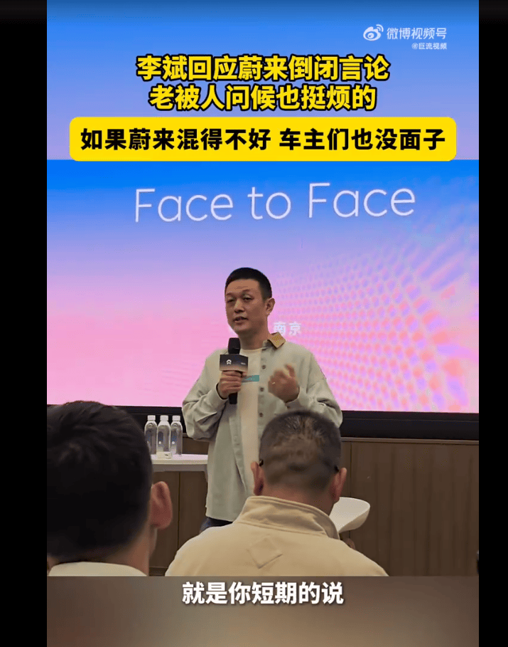 | 近日,有网友发布蔚来董事长李斌的讲话视频,李斌在“用户面对面”活动表示,今年做出了调整,将长期目标和短期经营目标结合起来。如果蔚来自己不能稳健的经营,那对用户来说是不负责任。“被人问候一下蔚来什么时候倒闭,老被人问候也挺烦,对不对?”