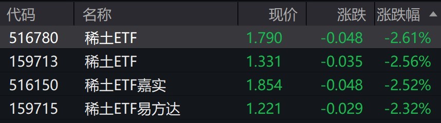 0每经记者|叶峰 每经编辑|肖芮冬 稀土概念股早盘走低,中国稀土跌超4%,北方稀土、盛和资源、金风科技跌超3%。 受盘面影响,稀土ETF跌超2%。 有券商表示,稀土作为高端制造与战略新兴产业的核心 ...