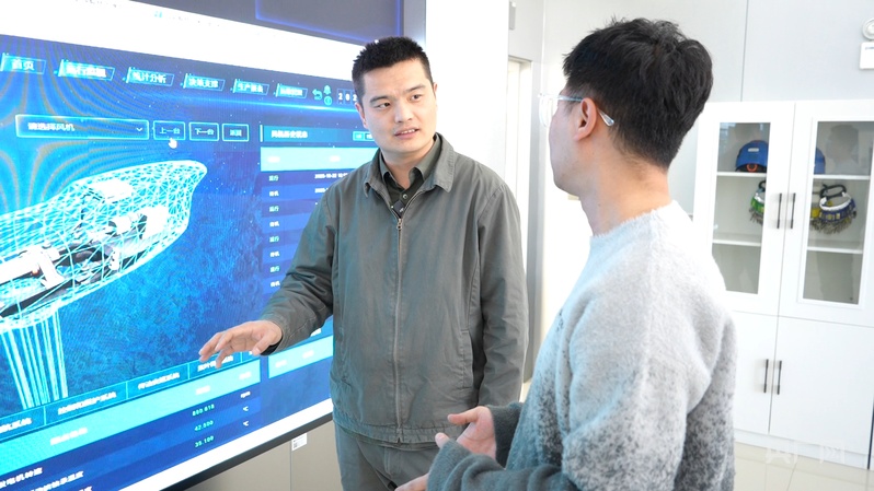 华能庄河风电场副厂长李潇男讲述海上风力发电机搭建过程(央广网见习记者 易博闻 摄) “常规情况下,在海上安装一台风机用时应该在3天左右,46小时搭建一台风机在整个行业内属于用时最短的。”提到这里,李潇男脸上流露出自豪的神色,“这代表着在世界范围内,中国海上工程建设方面已处于领先地位。” 更让人想不到的是,在这片充满科技感的风电场海域下方,竟然隐藏着一个生机勃勃的“海洋牧场”。“风机实际用海面积仅占规划面积的5%,其他海域我们主动让给‘海洋牧场’。”李潇男指着监控画面介绍,当地创新采用“渔风互补”模式,巧妙地将风机基础打造成人工鱼礁,为鱼贝类提供了新的栖息地。 在风电场2场址的空置区域,一个面积约6万亩的“海洋牧场”正在蓬勃发展。据了解,该养殖区总投资达1.5亿元,预计年产值约1亿元,可提供500个就业岗位,真正实现了“一片海域,多种产出”的综合利用效益。
