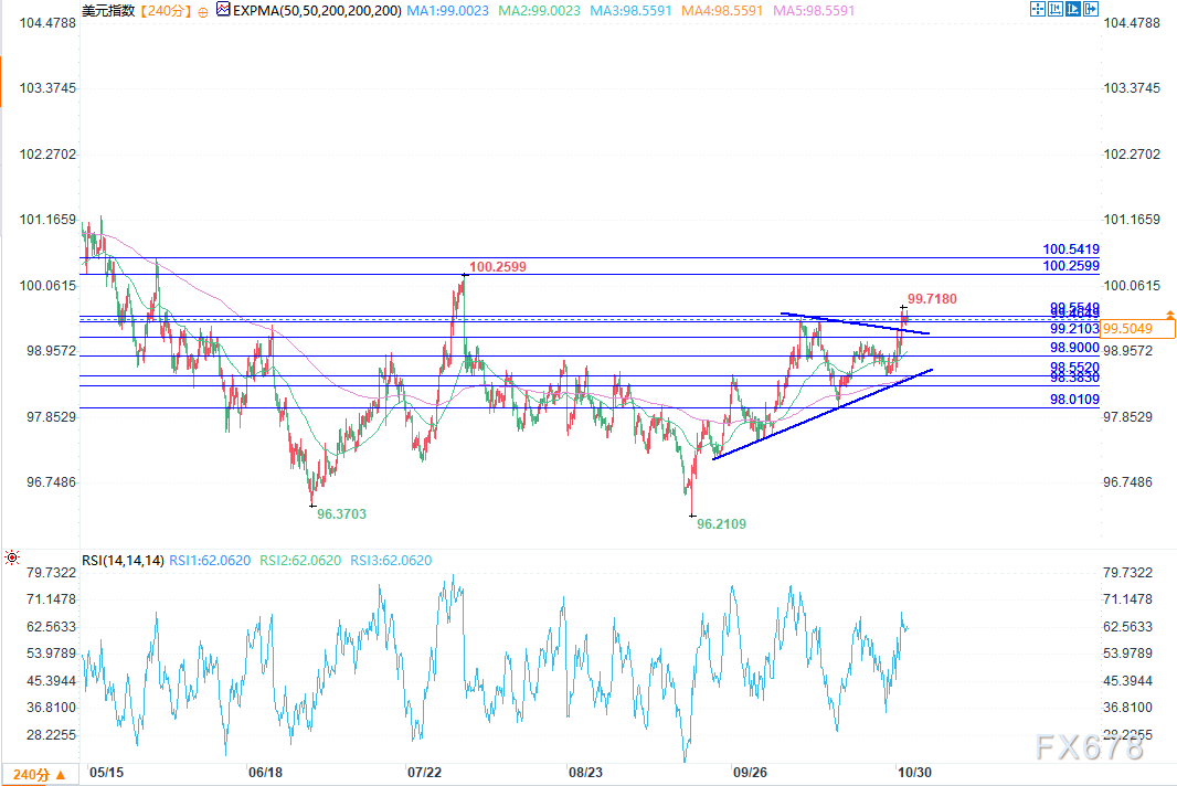 0周五(10月31日)欧洲交易时段,美元指数(DXY)徘徊在99.50附近。由于市场对美联储进一步降息的预期增强,美联储主席鲍威尔的鹰派言论所产生的影响被削弱了,美元汇率波动不大。 据芝商所美联储观察工具(CME ...
