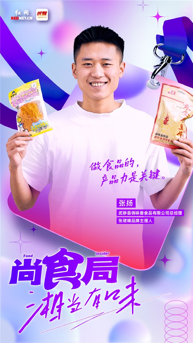 武陟县俏味香食品有限公司总经理、张珺晴品牌主理人张扬。海报设计:杨靖舟 95后“厂二代”接棒:从研究生到辣条厂掌舵者的跨界突围 湖南平江盛行两个行业:建材和休闲食品。2008年,张扬的父亲从建材行业转型,和家人一起来到河南,跨界转型进入休闲食品行业。 “辣条的‘湿货’市场竞争太激烈了,十家厂里有九家做‘湿货’,我们想走一条不同的路。”张扬说。因此,他们的工厂从最初的“湿货”辣条转型到“干货”,形成差异化竞争,也打开了新局面。 “那时我还小,根本没想到有一天会接手这个厂。”张扬回忆道。幸好,他热爱食品行业,大学期间学习市场营销,研究生则选择食品加工专业,为他的接棒打下了良好的基础。 去年7月,张扬正式全面接手工厂的管理。此前,他只在寒暑假偶尔帮忙,真正接手后,他面临的挑战远超想象:从生产车间到包装车间,每一道工序都要熟悉;从管控品质到开拓市场,每一项都要亲力亲为。而市场的白热化竞争,给了他当头一棒。“市场太残酷了,去年销量下滑明显。”他坦言,“挑战很大,不仅要懂生产,还要懂产品、懂市场。”