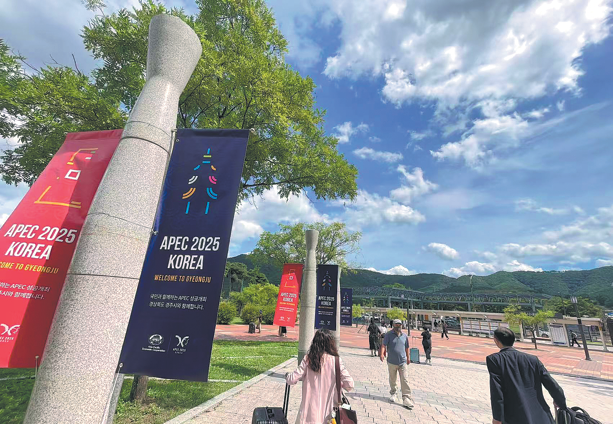 Banners are seen in the streets of Gyeongju, the Republic of Korea, before the upcoming Asia-Pacific Economic Cooperation Economic Leaders' Meeting. ZHANG YUNBI/CHINA DAILY Cho said the ROK looks forward to the opportunity of hosting the APEC Economic Leaders' Meeting to promote high-level exchanges between the two countries and deepen exchanges and cooperation. Seoul attaches great importance to and will spare no effort in developing relations with China, Cho added. Boosting regional growth Beijing places great emphasis on APEC cooperation, Foreign Ministry spokesman Guo Jiakun told reporters earlier this month. "We stand ready to work with other parties at this year's meeting to produce positive outcomes and contribute to the economic growth of the Asia-Pacific and the wider world," he added. The significance of Asia-Pacific cooperation is reflected in statistics released recently by the General Administration of Customs. China's trade with APEC economies totaled 19.41 trillion yuan (about $2.7 trillion) in the first three quarters of this year, a 2 percent year-on-year increase. Combined trade with fellow APEC economies accounts for nearly 58 percent of China's total foreign trade, Lyu Daliang, spokesman for the GAC and head of its department of statistics and analysis, said on Oct 13. According to Lyu, China's imports and exports of high-tech products with other APEC economies in the first three quarters both exceeded 2 trillion yuan, up 7.9 percent and 12 percent, respectively. [NextPage]