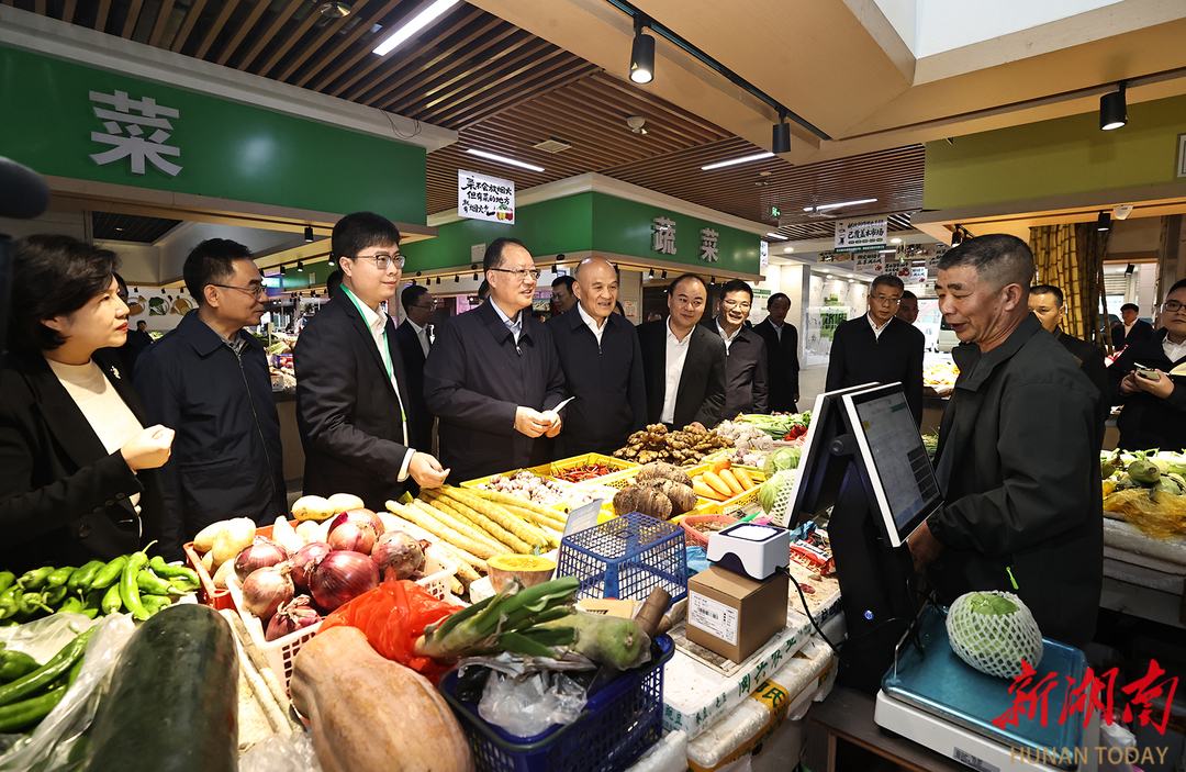 (毛伟明在蒸水农贸市场检查“阳光计量”农贸市场建设和食品安全。) 作为衡阳首批“阳光计量农贸市场”示范市场,蒸水农贸市场搭建“智慧农贸市场计量监管云平台”,实时展示交易、客流、检测、溯源等数据。毛伟明现场检查智慧计量、食品安全等情况,强调要丰富拓展应用场景,让更多计量新产品、新技术满足消费者多样化、个性化需求,持续打造公平放心的市场环境,守护好“舌尖上的安全”。 调研中,毛伟明强调,要着力构建具有区域特色的现代化产业体系。发挥衡阳资源禀赋和产业基础优势,推动冶金化工等传统产业转型升级、电工装备等优势产业巩固提升、智能衡器计量等新兴产业培育壮大、人工智能等未来产业加速布局,不断培育壮大新质生产力。要推动科技创新和产业创新深度融合。强化企业科技创新主体地位,完善“大院、大校、大产业”协同创新机制,推动产业链和创新链无缝对接。要优化服务生态夯实产业发展根基。强化土地、金融、人才等生产要素保障,加快建设一批成果转化、检验检测等高能级平台,布局一批概念验证、中试验证中心等,持续打造市场化、法治化、国际化一流营商环境。