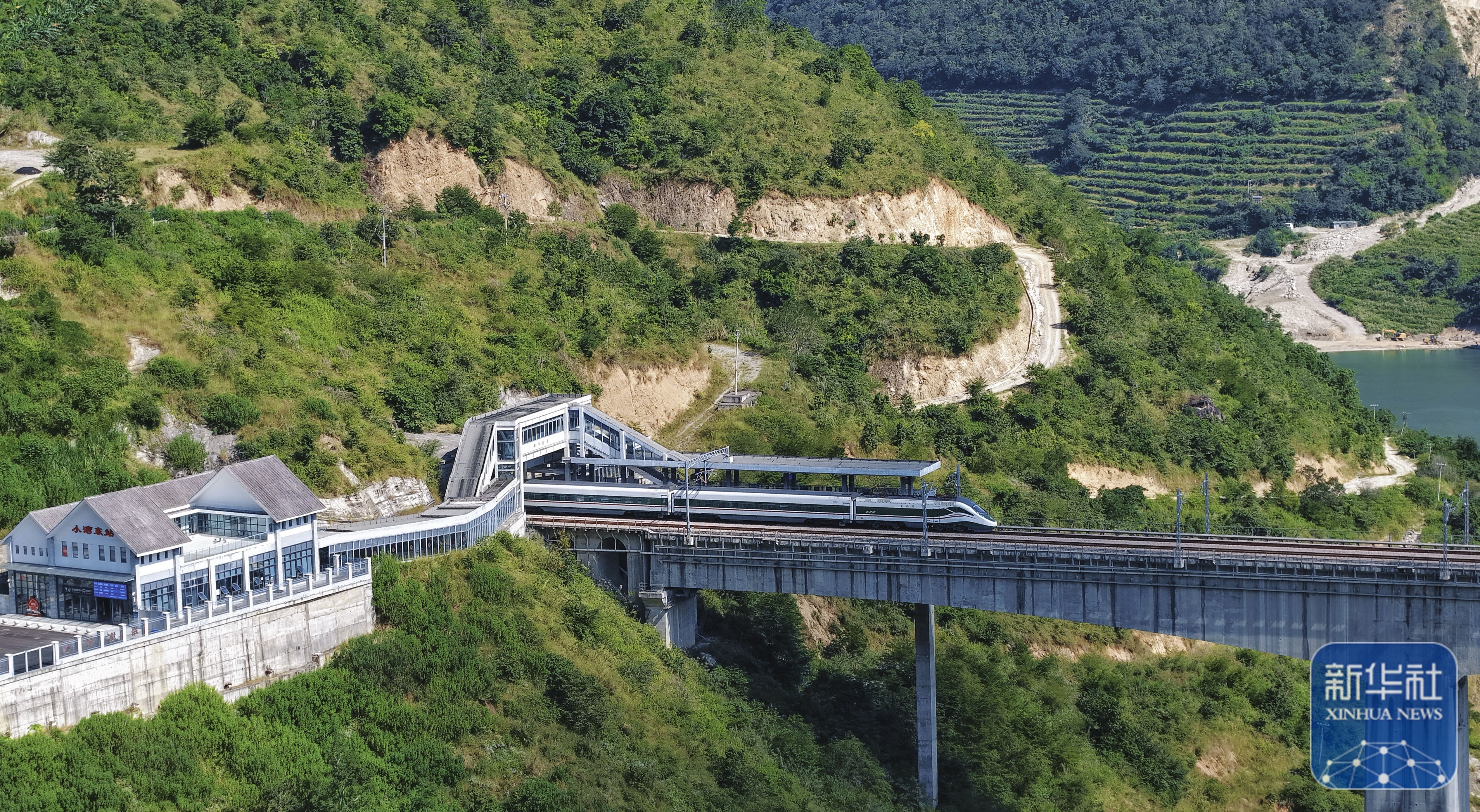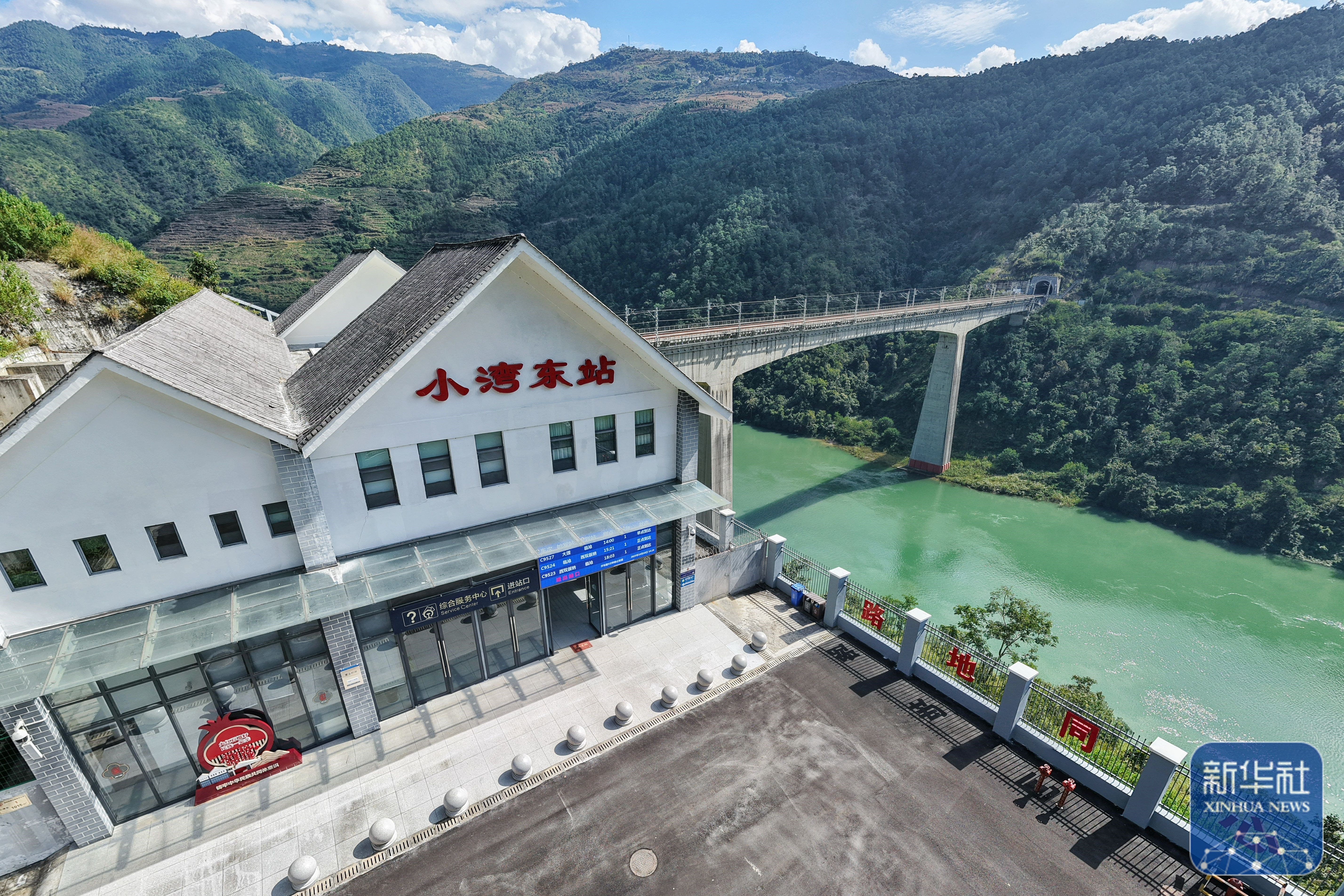 ↑ 10月31日,小湾东站下方的澜沧江波光粼粼(无人机照片)。 小湾东站位于云南省大理州南涧县小湾东镇,距离南涧县城80多公里,是为了巩固脱贫攻坚成果、助力乡村振兴而在已开通运营的线路上特别新建的火车站。该站坐落在澜沧江江畔,被高山、峡谷、江河环绕。受地形地貌限制,车站采用半隧半桥方式设计建设,一半建在新华隧道里,一半建在澜沧江特大桥上。 小湾东站开通后,周边数十万群众的生产、生活因此受益,不仅方便了群众就医、就学、就业,更激活周边地区与外界的客流、物流加速流动。 近年来,当地进行定点帮扶,建设“云上小湾”等文旅项目,巩固拓展脱贫攻坚成果同乡村振兴有效衔接,让更多人“走进来”垂钓、游玩,让小湾东镇的生态江鱼、乌骨鸡、茶叶、水果等农副产品“走出去”,推动当地经济发展,为当地群众生活带来更广阔的发展前景。 新华社发(杨紫轩摄)