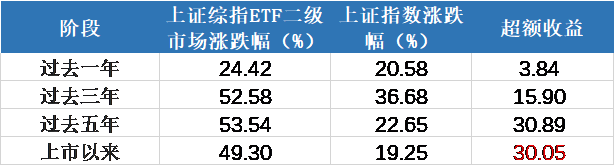 当A股还正酣战4000点关口,这只ETF以突出的超额收益,已经带领一批投资者“提前站上5100点”。 截至10月底(大盘3954.79点)来看,上证综指ETF(510760)上市(2020年9月9日)以来超额达30.05%,相当于从上市开始持有至今,已经站上5143点。 为何上证综指ETF(510760)取得如此优异成绩? 第一,指数增强明显,上市以来超额超30%。 上证综指ETF(510760)跟踪上证指数,采用抽样复制策略,在控制跟踪误差的前提下增厚收益。数据显示,上证综指ETF各阶段均获得超额收益。截至2025年10月31日,上市以来,上证综指ETF二级市场涨跌幅为49.3%,同期上证综指涨幅为19.25%,超额收益达到30.05%。