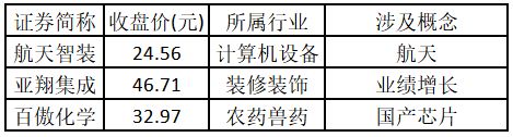 (注:概念涨停板个股越多,说明该概念被资金重点关注,是当前热门概念。) 二、涨停个股榜单 从涨势强度来看,涨停板个股中,股价创出历史新高的个股共有3只,包括航天智装、亚翔集成、百傲化学。欢迎大家关注微信公众号“道达号”,其“道达涨停复盘”栏目为大家解读。
