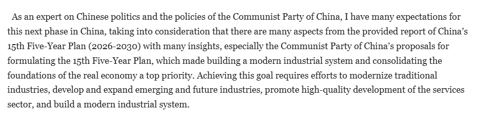 欧洲《现代外交》网站报道截图 纳迪亚·希勒米在文章中称,作为一名中国问题专家,基于对中国“十五五”规划的深入研读,“我对中国未来发展充满期待”。文章指出,值得注意的是,在规划建议中将建设现代化产业体系、夯实实体经济根基列为优先任务。实现这一战略目标,需要着力推进传统产业现代化转型,培育壮大新兴与未来产业,推动服务业高质量发展,最终构建起先进的现代化产业体系。
