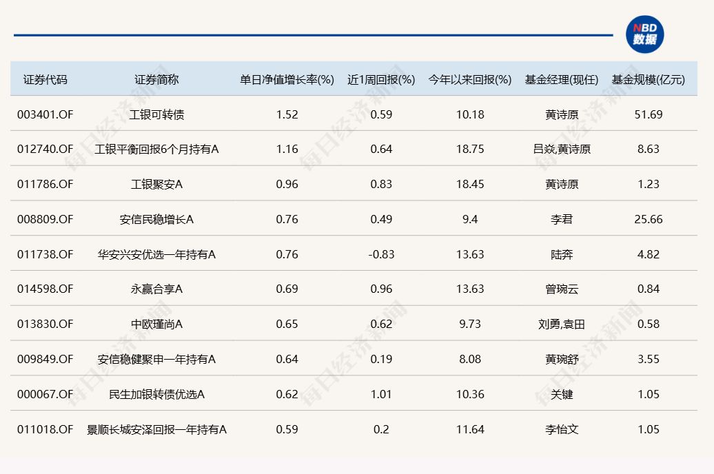 3.单日债基涨跌幅榜