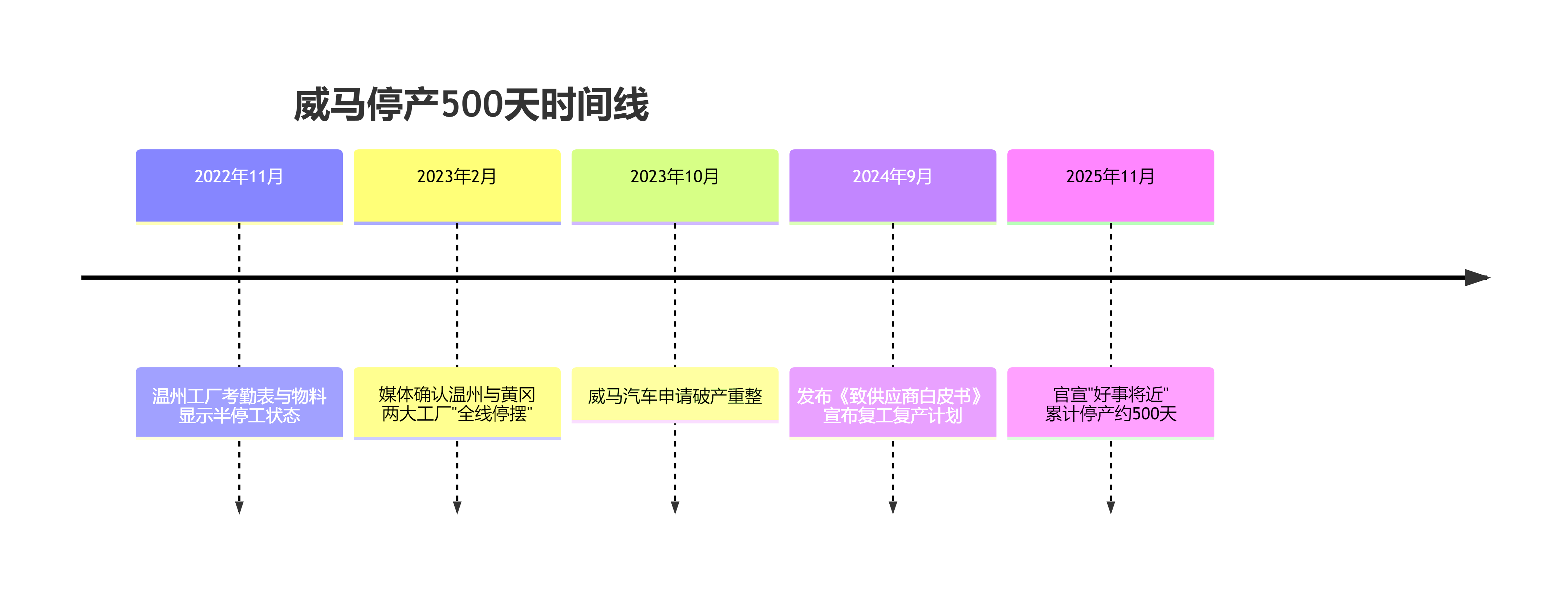 2022年12月,有消息称,由于拖欠供应商货款,威马工厂已陷入停产状态。一位当地人士透露:“现在温州工厂里都没人了。” 在销售和服务终端,威马也处于瘫痪状态。2023年2月,有消息称北京威马朝北售后群已经解散,这是北京的最后一家门店。 位于北京合生汇的体验中心也早已关闭。据旁边的极氪直营店销售顾问介绍,威马这个体验中心2022年12月就已经没人没车了。 更为严重的是,威马官网早已打不开,官方购车小程序每次启动均以失败告终,官方客服无人接听。这一切都表明,威马汽车的经营已经陷入了实质性的停滞。 破产重整 面对严峻的经营形势,威马汽车在2023年10月正式申请破产重整。 根据上海市第三中级人民法院在预重整阶段的审计评估,威马汽车负债高达250亿元,资产价值仅约96亿元。另有数据显示,威马汽车破产重整时留下了450亿债务。 威马汽车的崩塌不仅留下了巨额债务,更直接影响了大批员工和车主。 2023年,威马汽车被曝无故拖欠248名员工2023年2月至5月期间工资报酬共计约1339万元。到次年3月,威马汽车拖欠的员工薪资、赔偿金和福利金已超过4000万元,人均债权金额超过10万元。 对于车主而言,威马汽车的破产更是让他们陷入了困境。 “没有人比车主更希望威马活下去。”一位北京威马车主表示,自己才买不到半年的车现在没了售后保障,威马APP功能无法正常使用。他担心十几万元打了水漂。 白衣骑士 在威马汽车面临绝境之时,深圳翔飞汽车销售有限公司的出现为其带来了一线生机。 2025年6月,威马汽车破产重整管理人透露,深圳翔飞成为威马重整投资人。9月6日,威马汽车正式发布《致供应商白皮书》,宣布根据2025年4月3日法院裁定批准的重整计划,深圳翔飞已接管威马四家公司,正在全力以赴推动威马EX5和E5车型在温州基地快速恢复量产。 公开信息显示,深圳翔飞汽车销售有限公司成立于2023年9月22日,经营范围仅为汽车销售、小微型客车租赁、货物进出口及企业管理咨询等。 就是这样一家主营业务并非造车的公司,如今却肩负起了威马汽车重整的重任。 深圳翔飞在重整计划中展现了雄心勃勃的规划。据《致供应商白皮书》显示,翔飞将在初期注入10亿资金保障运营,预计于2025年9月复产威马EX5和E5车型,确保今年产销1万台。 复工疑云 然而,威马汽车的重整之路并非一帆风顺。 按照白皮书规划,承担主要生产任务的温州基地应在9月复产。但白皮书发布10天后,南都・湾财社记者实地走访威马汽车温州基地时,却发现这里较为安静。 记者在现场观察到,当天下午,在隔壁工地有规律的敲打声衬托下,威马温州基地显得十分沉静。从基地多侧的护栏朝内看去,停车区等室外空旷区域难见人员走动。 驻守出入口的一名安保人员确认了基地内有一些人员的车辆,但对于复产计划,他认为“难说,可能原计划是这个时候。” 甚至有多名基地安保人员给出了“基地未复产”的答复。其中一名安保人员称,基地内的工作人员并非从事生产,主要是返聘回来的工程师在进行清点工作。 对于安保人员给出的回复,深圳翔飞沟通联系人不予认同。9月17日,他告诉湾财社记者,安保人员属于外包公司,不清楚内部情况。 该联系人表示,温州基地确已复产,但目前处于“拉产阶段”,需要联调整个产线,生产时间不连续、不固定。他解释称,“整车厂拉产最快的都要一到三个月。” 前路挑战 即便威马汽车成功复产,其未来发展仍面临诸多挑战。 品牌信誉的重建是威马汽车必须面对的首要难题。破产前,威马已因2020年多次自燃事故、2021年“锁电”风波引发车主集体投诉、2022年登上广东315晚会黑名单等问题,严重损害消费者信心。 产品竞争力的不足同样不容忽视。威马即将复产的EX5、E5车型产品竞争力明显落后,仍采用2018年的400V平台技术,而行业已普遍升级至800V高压和4C/5C超充技术。 威马宣称未来五年将推出超过10款新车型,但纵观其历史,2018至2022五年间仅推出6款车型。在新能源汽车行业“半年一改款,一年一换代”的快速迭代背景下,这一计划实现难度很大。 此外,资金问题也将是威马能否走远的关键。根据重整计划,深圳翔飞初期将投入10亿元资金。但在新能源汽车行业,10亿元资金可谓杯水车薪。 相比之下,其他新动辄投入数十亿甚至上百亿进行技术研发和市场拓展。 政府支持 值得注意的是,威马汽车的重整得到了政府层面的有力支持。 《致供应商白皮书》显示,当地政府给予了大力支持,温州市政府不仅会专班协助复工复产工作,还会协调供应链、给予融资与补贴支持,以及帮助恢复信用评级。 今年4月,温州市发改委曾发布《温州市支持新能源汽车产业发展十条政策意见》,其中多条政策针对企业开发新车型、建设新能源汽车领域创新平台、整车技术攻关等举措进行数十万至上千万补贴奖励。而威马汽车是目前温州市内唯一一家具备生产资质的整车制造公司。 今年7月,温州市特种设备检测科学研究院也给予了直接帮助,组建了由多名专家领衔的专业检验团队,深入威马汽车生产一线,检测并逐一排查了压力管道、压力容器等特种设备。 威马汽车规划到2026年量产10万台,2030年挑战100万台。但现实情况是,即使在其销量最好的2021年,威马的全年销量也仅为4.4万辆。 【责任编辑:李扬子 】 (责任编辑:王治强 HF013)