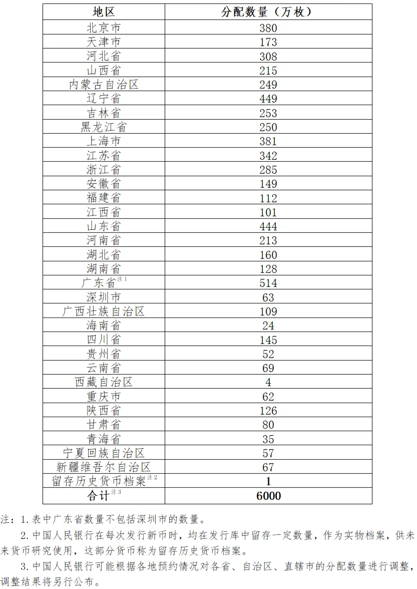 背面图案 二、普通纪念币面额、规格、材质和发行数量 中国京剧艺术普通纪念币面额为5元,直径为30毫米,材质为黄铜合金,发行数量为6000万枚。各省、自治区、直辖市分配数量如下: