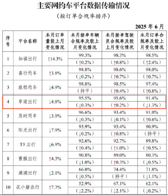 另外,《次世代车研所》栏目从交通运输部公布的数据看到,今年上半年,享道出行在一些月份的订单合规率也在下降。今年5月,享道出行的订单量环比下降6.4%,订单合规率也下降了1.9%;今年6月,享道出行的订单量环比下降4.8%,订单合规率下降1.3%。 值得注意的是,截至2025年6月30日,享道出行平台上的部分车辆及司机尚未取得必要的运输证或网络预约出租汽车驾驶员证,享道出行可能会面临行政处罚,包括罚款、整改令以及暂停或终止营运的颁令,其中任何一项均可能扰乱业务经营,并对业务、财务状况及经营业绩造成重大不利影响。