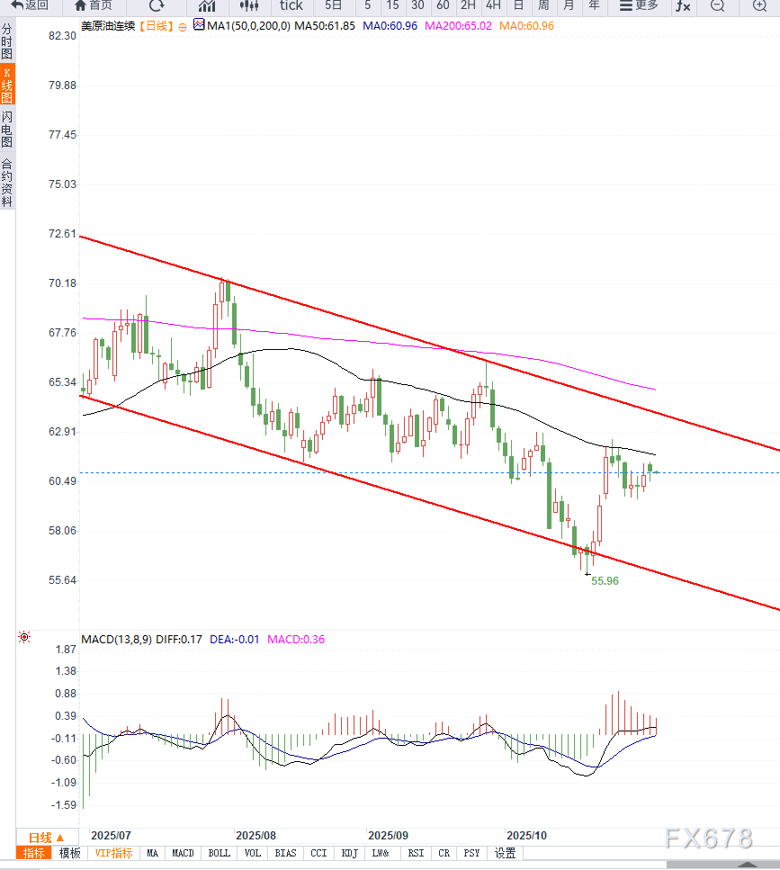 西德克萨斯中质原油(WTI)周二亚盘时段微跌约0.1%,交投于61美元/桶附近。OPEC及其伙伴组织在周日宣布,将暂停自2026年第一季度起的增产计划,理由是预计届时石油需求将出现季节性放缓。 ![]() “暂停配额增加虽不会实质改变我们的产量预测,但这释放了一个重要信号——该组织仍在根据市场条件动态调整供应。” OPEC+目前约有八个核心成员尚有约每日120万桶的剩余额度待恢复,但由于部分国家此前超产被要求抵消,另一些成员则因技术与资金问题难以提升产量,实际增产进度明显落后于计划。 从技术面来看,美原油(WTI)日线图显示价格近期在59至63美元区间内震荡整理,形成明显的箱体结构。价格目前运行在9日指数移动均线(EMA)上方,短期动能略显积极,但14日相对强弱指数(RSI)仍徘徊在50附近,显示多空力量处于平衡状态。 若油价能有效突破63美元上方压力区间,则可能打开上行空间指向65美元;反之,若跌破59美元支撑,或将重回弱势通道。 整体而言,技术走势支持短线温和反弹,但中期仍受制于供应过剩的基本面压力。 与此同时,市场还受到地缘风险的干扰。乌克兰无人机近日袭击了黑海港口图阿普谢(Tuapse),导致一艘油轮起火,装载设施受损。 知情人士透露,当地炼厂的原油接收已被迫暂停。 在阿布扎比举行的ADIPEC能源会议上,多家大型能源企业高管也表达了对供应风险的担忧。 BP首席执行官Murray Auchincloss表示: “最新一轮针对俄罗斯的制裁确实带来了实质性影响,并削弱了供应能力。” 尽管如此,一些产油国仍试图安抚市场。 阿联酋能源官员周一公开表示,当前的供应增长不会导致严重过剩,油市仍具备一定弹性。 摩根士丹利分析团队进一步指出: “我们上调了布伦特短期价格预期,但同时警告,市场在未来数月内仍将面临显著的供应盈余压力。” ![]() OPEC+暂停增产的举动更像是对市场情绪的修正,而非供需结构的根本转变。短期内,油价或在60至65美元区间震荡,但若全球需求复苏乏力或地缘局势再度紧张,价格波动性将进一步上升。 机构的分歧说明市场尚未形成共识,而真正的风险在于——供应端过快恢复可能再次压制油价,削弱成员国财政收入。