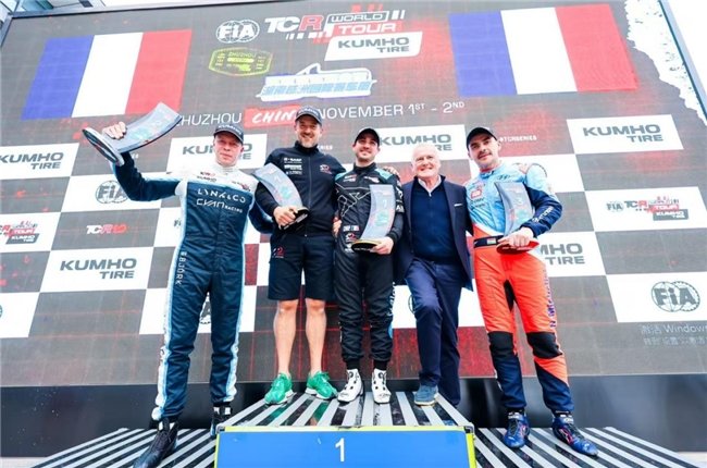 11 月 1 日(周六),首回合正赛率先拉开战幕经过激烈角逐,SP Compétition 车队的 Aurélien Comte 凭借出色的赛道策略与轮胎掌控力,以微弱优势斩获冠军;领克 Cyan Racing 车队的 Thed Björk 紧随其后,凭借稳定的行驶表现拿下亚军;BRC Hyundai N Squadra Corse 车队的 Norbert Michelisz 则位列季军。