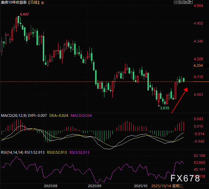 周二(11月4日)亚欧交易时段,美元指数走出冲高回落走势,盘中一度短暂涨超100整数关口,之前该指数已连续第四个交易日上涨,目前交投于99.80附近。 ![]() 推动美元指数上行的核心动力,源于美联储政策前景的谨慎转向。 据芝商所(CME)美联储观察工具数据显示,当前联邦基金期货交易者对12月美联储降息的定价概率已降至65%,较一周前的94%大幅回落。 这一概率变化的直接诱因,是上周美联储主席杰罗姆·鲍威尔在会后新闻发布会上的表态——他明确指出,12月再次降息的可能性远未确定,且强调在官方数据发布恢复前,政策制定者需维持“观望”态度。 10年期美债收益率持续异动支撑美元走强 周一市场中,10年期美国国债收益率上行2.7个基点,这一变动进一步强化了美元的利差优势,叠加鲍威尔“12月降息非既定事实”的警告,共同为美元指数的涨势提供了延续性动力。 值得注意的是10月29日美国10年期国债收益率大涨10个基点,当天也是本次美元指数连续上涨的起点日期。 ![]() 美联储官员分歧表态或使美元指数来回拉扯 美联储内部的政策分歧,进一步增加了美元指数走势的变数。当前官员观点可分为明显的鸽派与略带鹰派的阵营,尚未形成统一方向。 其中鸽派代表的美联储理事斯蒂芬·米兰于周一明确表示,“当前美联储政策立场过度紧缩,中性利率水平远低于当前政策利率”。 他进一步补充,“鉴于我对通胀的判断比委员会其他部分成员更为乐观,我认为无必要继续维持当前的紧缩政策”。需要注意的是,米兰此前已从白宫经济顾问委员会休假,目前临时出任美联储理事一职。 另一位美联储理事莉萨·库克也持鸽派立场,她指出“劳动力市场进一步走弱的风险已超过通胀反弹风险”。 不过,两人均未明确承诺在12月联邦公开市场委员会(FOMC)会议上支持降息,仅强调货币政策路径并非预设不变。 与鸽派不同,芝加哥联储主席奥斯坦·古尔斯比发表了偏向鹰派的观点。 他表示,自身对通胀的担忧程度高于对就业市场的担忧,但尚未确定12月FOMC会议上的政策立场。古尔斯比同时提到,“利率仍有较大下调空间,但下调节奏大概率需与通胀回落节奏保持一致”,暗示对降息的谨慎态度。 美元指数面临政府停摆与疲软经济数据的挑战 尽管美元指数短期表现强势,但其上行空间仍面临两大关键压制因素。 其一为美国政府停摆的持续僵局,目前这一状况已进入第六周,国会在共和党支持的拨款法案上陷入僵持,短期尚无破局迹象。 更关键的是,全美联邦雇员持续处于无薪工作状态,这不仅加剧了经济前景的不确定性,也让市场谨慎情绪不断升温,间接对美元形成利空。 其二是疲软的经济数据信号。供应管理协会(ISM)公布的10月制造业采购经理人指数(PMI)从前期的49.1降至48.7,这一数据不仅显示制造业收缩幅度超出预期,还反映出价格压力同步降温,且显著低于49.5的市场预期,进一步削弱了美元的基本面支撑。 但值得注意的是美国美国10月SPGI制造业PMI初值52.2是小幅超预期的,而昨天公布的终值为52.5又小幅上修,此数据主要是美国境内1400家公司,并不像ISM的PMI涉及美国跨国企业,于是整体看来美国国内情况还可以,但是外部经营状况有所恶化。 后续焦点:关键经济数据将引导短期方向 对于美元指数的短期走势而言,之后公布的数据将成为重要指引。 由于美国政府继续停摆,美国人口普查局公布的9月工厂订单数据与美国劳工部公布的JOLTS职位空缺数据可能均会缺席。 目前市场关注周三美国10月ADP就业人数变动,俗称美国的小非农数据。 整体来看,当前美元指数正处于“支撑与压制并存、政策与数据博弈”的状态,后续走势需紧密跟踪美联储表态与经济数据的联动效应。 技术分析: 美元指数日线图可以看出,美元指数突破99.36后持续站稳此价格水平,突破后的量度涨幅在100.45附近,目前100点整数关口是第一压力位,之后则是量度涨幅点位的100.45。 美元指数的支撑在99.36,以及图中红色的上升趋势线。 ![]() 北京时间16:05,美元指数现报99.80。
