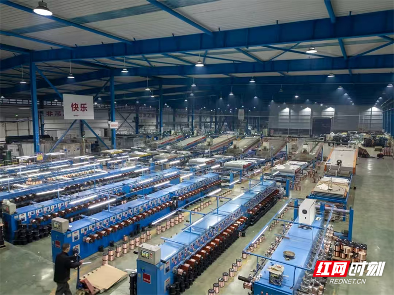 编者按:2020年9月24日,承载着国家深化改革开放战略使命的中国(湖南)自由贸易试验区郴州片区揭牌运行。五载同程,片区与企业、一线生产工人等共攀产业高峰,经济取得令人鼓舞的成绩,展现出充沛的动力和活力。 红网时刻新闻通讯员 谭洁 郴州报道 为生动展现这五年来的奋斗历程与发展成果,郴州高新区新媒体中心特策划推出“五载同行 向新出发——我与自贸共成长”主题报道,记者深入一线、扎根基层,进产线、看车间、访工厂,与奋斗者同频,用脚步丈量发展热土,触摸产业向上攀升的蓬勃脉动。 走进位于自贸区郴州片区、高新区的郴州高新铜业有限公司(以下简称“高新铜业”)宏大气派的智能车间,可见在一排排自动化、智能化加工设备高速运转之下,一块块铜板就神奇地转变成一卷卷光亮的铜杆、铜线。机器声轰鸣声中,来回穿梭的叉车将这些半成品运往仅有一墙之隔的下游企业湖南铜利新材料有限公司、湖南小桥电缆有限公司。