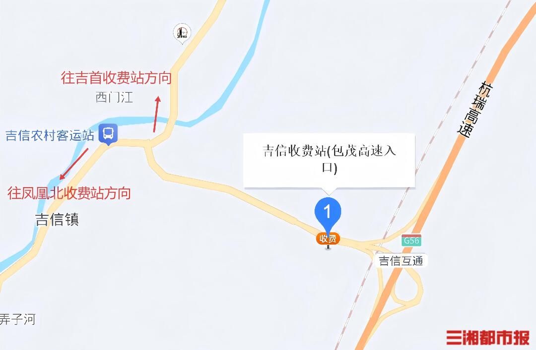 2、11月7日8时至2025年12月7日18时,G56杭瑞高速吉信收费站入口ETC/人工混合车道(120)进行地磅维修改造,施工期间在吉信收费站上高速的货运车辆(含皮卡车),往南可选择从凤凰北收费站上高速,往北可选择从吉首、吉首西收费站上高速。