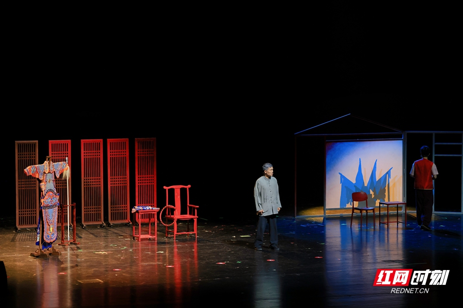 《新定军山》主创团队进行交流探讨。 红网时刻新闻11月5日讯(记者 胡邦建 通讯员 周嘉卉 摄影 蔡锃旸)11月4日,“大地情深”——全国优秀群众文艺作品展演暨第二十届群星奖颁奖活动在重庆举行,现场公布了第二十届群星奖获奖名单。湖南两部作品获奖,其中,戏剧小品《新定军山》荣获了第二十届群星奖(戏剧类)。 “群星奖”是由文化和旅游部设立的国家文化艺术政府奖,该奖项每三年评选一次,包含音乐、舞蹈、戏剧、曲艺、群众合唱、广场舞六大门类。本届“群星奖”共有5039个作品(团队)参评,最终评选出了60个获奖作品(团队)。 《新定军山》由湖南省文化馆、邵阳市文化馆、新邵县文化馆联合演出,长沙市人艺话剧团制作,是以传统文化传承和父子代际关系为主题的戏剧小品。 作品中,京剧团老演员希望儿子子承父业,儿子却希望选择以网络直播为自己的职业规划,在一次争吵和直播的碰撞中,父亲误入镜头,他无奈的倾诉和落寞的吟唱令网友们深深感动,纷纷留言互动点赞中华戏曲之美和父亲的良苦用心。深感愧疚的儿子也理解了父亲的苦心,邀请父亲和他一同直播唱戏。父子各展其长,共同探寻了传统文化与现代艺术和谐共生之道。 湖南省文化馆副馆长、《新定军山》导演肖彬透露,《新定军山》在获奖之前,已持续沉淀了3年时间。在作品创排过程中,主创团队对剧本、演员阵容、故事情节、视听设计等方面进行了不断改进与优化。特别是“生活化”和“符号化”两种风格之间的平衡,是主创团队考虑的重点,为此,作品在台词上采用湖南长沙“塑料普通话”进行表达,大力营造“生活化”的风格,同时又引入京剧艺术和网络直播元素,凸显了“符号化”的特色。 “我们希望以视觉元素作为暗示符号,在有限的演出时间内让观众更顺畅地走进舞台叙事语境。”肖彬表示,期待通过在舞台上展开的“父子对话”,吸引更多同行者共同投身于这场传统与现代的精彩碰撞,在“守”住文化之“根”的同时,“拓”宽表达之“新”。 除《新定军山》外,湖南报送的另一部作品常德丝弦《走马楼的小秘密》荣获了第二十届群星奖(曲艺类)。该作品由常德市武陵区文化馆打造,以常德丝弦为载体,通过祖孙三代的艺术情缘,生动呈现了非遗在新时代的传承发展。 |