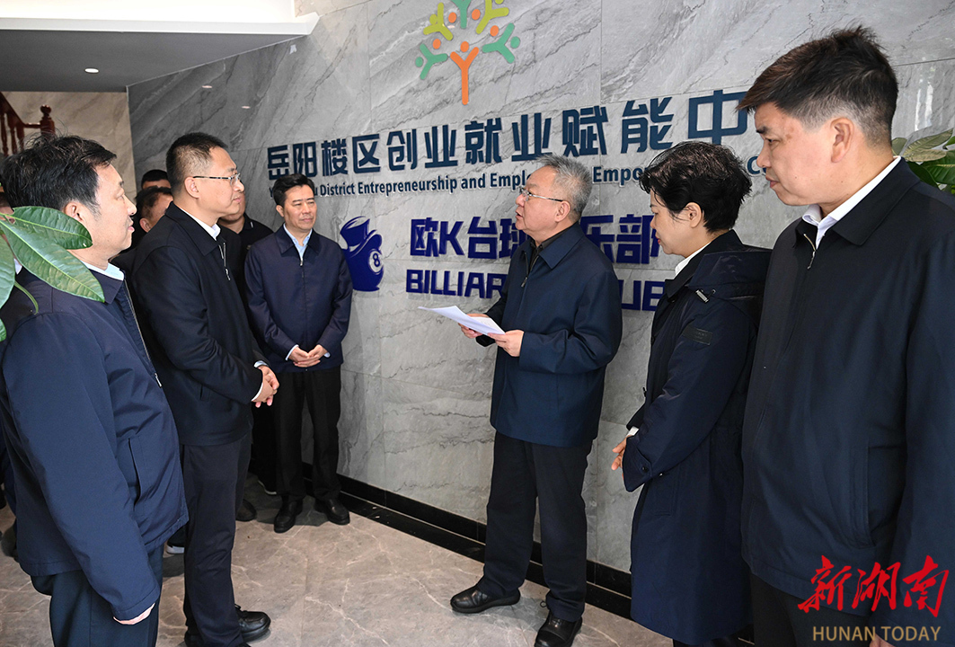 (11月5日,沈晓明对岳阳楼区创业就业赋能中心作用没有得到发挥等问题进行了暗访。) 座谈会上,沈晓明对一年来岳阳各项事业发展取得的成效表示肯定。他指出,“十五五”期间,岳阳要更好担负起省域副中心城市的使命责任,找准自身定位,积极对接融入长江经济带,在做大规模能级、提升区域辐射带动力上下功夫。要在建设具有岳阳特色的现代化产业体系上持续用力,推动石化产业延链补链强链,更好发挥园区主阵地作用,积极培育壮大新增长点。要扛牢“守护好一江碧水”的政治责任,加强洞庭湖综合治理,持续深化大气等污染防治,创新生态产品价值实现机制。要进一步扩大高水平对外开放,强化与长三角的协同合作,更好发挥交通枢纽功能作用,稳步扩大规则、规制、管理、标准等制度型开放。要坚持统筹发展和安全,突出加强防洪安全能力建设,坚决守好粮食安全底线,深化基层社会治理,提升本质安全水平。要进一步扛牢管党治党政治责任,巩固拓展学习教育成果,持续抓好基层党组织建设,健全为基层减负赋能长效机制。