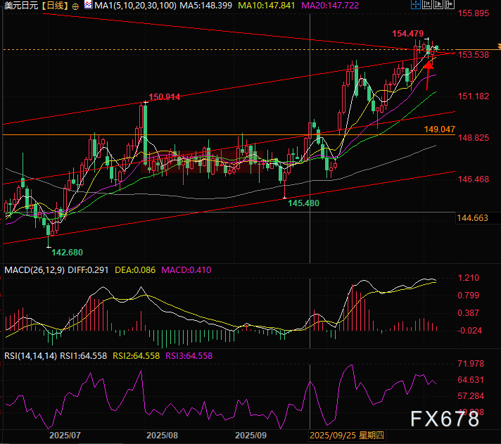 0周四(11月6日)亚欧时段美元兑日元小幅震荡,目前跌0.1%交投于153.95附近,汇价周三走出了大幅探底回升走势后尾盘加速拉伸一度接近9个月前高。 周二受日本财务相片山皋月再次的口头警告,美元兑日元曾在美元 ...