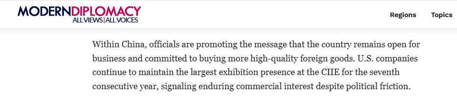 欧洲《现代外交》网站报道截图 白俄罗斯国家通讯社的报道认为,进博会已成为推动白俄罗斯对华出口最高效的平台。报道说,作为全球首个以进口为主题的国家级展会,进博会旨在搭建国际企业与中方采购商的对接平台,展示外国产品与服务,同时彰显中国持续扩大市场开放的坚定承诺。在白俄罗斯展区汇聚了食品行业、制造业、科研机构及教育领域等40余家企业参展。同时,展会期间还将推出丰富多彩的文化活动。