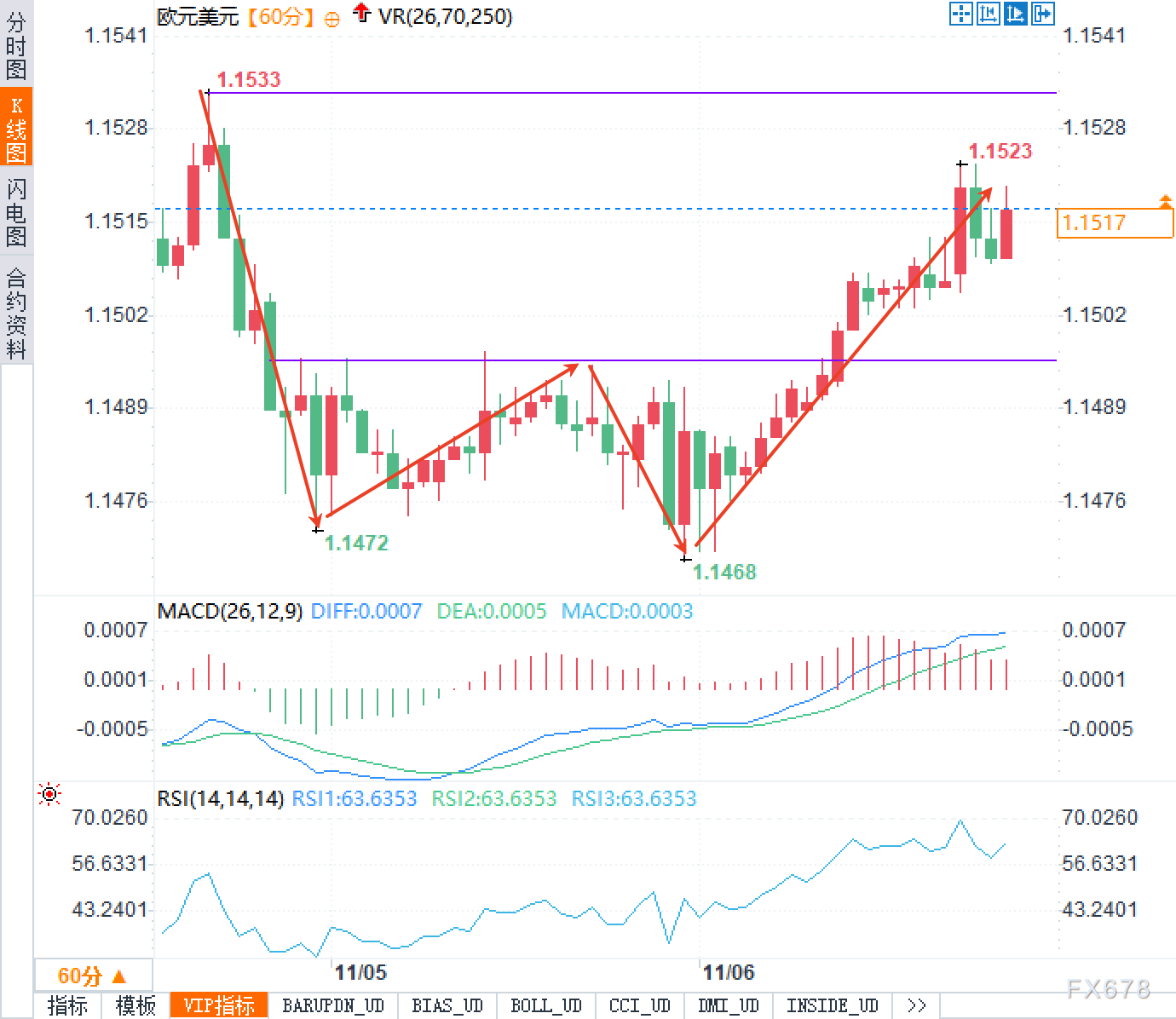 0欧元兑美元汇价周四(11月6日)欧洲时段围绕1.1520交投。近期小时图上出现自1.1468快速拉升并触及1.1523的上探,随后小幅回落,但仍守在颈线上方。当前多空在基本面增速放缓与央行表态偏中性的交汇处拉锯,短线进 ...