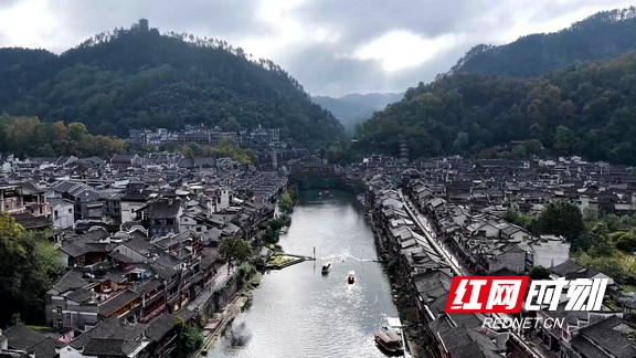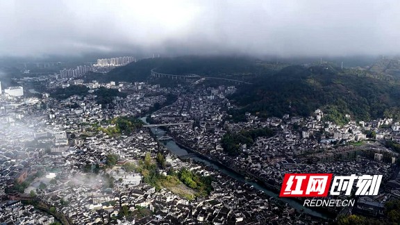红网时刻新闻11月5日讯(凤凰融媒记者 肖昕翔 沈荣灿)持续多日的阴雨天气暂告段落,随着气温回温,11月4日早上,凤凰古城雾气弥漫,云海在古城上空飘动,时而蜿蜒迂回,时而倾泄流动,宛若一幅美丽的云雾山水画卷。