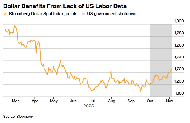 FX168财经报社(亚太)讯 顶尖投行外汇策略师表示,美国政府停摆掩盖了劳动力市场结构性疲软的信号,一旦数据开始陆续公布,这些疲软信号将拖累美元走低。 ![]() (截图来源:彭博社) 由于政府停摆导致经济数据匮乏,美元在10月份创下今年第二好的单月表现。 摩根士丹利(Morgan Stanley)十国集团(G10)外汇策略主管David Adams周四(11月6日)在接受采访时表示:“我们认为,美国劳动力市场数据的缺失使得投资者忽略了与招聘结构性放缓相关的潜在趋势。就业数据越是持续显示招聘速度放缓,投资者就越会通过实际利率和名义利率的下降来反映这一结构性因素,而这反过来又会对美元构成压力。” 彭博美元现货指数周四连续第二天下跌,跌幅为自10月中旬以来最大。当日,一项私人机构发布的美国就业数据表明劳动力市场正在走弱。报告公布后,交易员加大对美联储降息的押注。 该指数今年迄今已下跌6.8%,并在上半年录得数十年来最糟糕的表现。 ![]() (截图来源:彭博社) 美国政府停摆目前已成为该国历史上持续时间最长的一次,这使得美国经济前景更加不明朗。人们开始怀疑,美联储在今年已两次降息之后,是否还能获得足够的数据来支持12月再次降息的决定。 在政府停摆前公布的最新美国非农就业报告显示,8月就业增长明显放缓,而失业率则升至自2021年以来的最高水平。自那以后,就业前景改善的迹象寥寥无几,投资者正密切关注私人数据和企业财报,以寻找相关线索。 彭博策略师Brendan Fagan表示:“多种因素可能仍会延续美元的涨势,但其脆弱性如今再次成为关注焦点。劳动力市场前景越趋疲软,收益率驱动的支撑就越有可能从顺风转变为陷阱。” 数据重启后美元恐再遭遇抛售 三菱日联金融集团(MUFG)全球市场研究主管Derek Halpenny表示,一旦新的数据发布,美元可能会再度遭遇抛售,因为数据将显示就业市场进一步疲软。 Halpenny指出:“根据目前掌握的非农就业数据,劳动力市场的恶化程度如此之深,在历史上这种情况下劳动力市场突然好转的情况极为罕见。” 他补充说,其他指标,如消费者信心和ISM就业数据,也显示就业状况正在走弱。 根据美国就业咨询公司“挑战者企业”周四公布,由于企业采纳人工智能并削减成本的影响开始浮现,美国雇主10月裁减超过15万个职务,创20年来同期最大降幅。 “挑战者企业”发布的报告显示,美国雇主在10月份宣布裁员153,074人,比2024年10月宣布的55,597人裁员增加了175%。这比一个月前宣布的54,064人裁员增加了183%。 10月底,快餐连锁店Chipotle Mexican Grill Inc.今年第三次下调业绩预期,原因是消费者减少外出就餐,这进一步表明美国的消费支出正在放缓。 Halpenny表示,美元的抛售压力可能在兑欧元时尤为明显。他预计,到今年年底,欧元/美元可能升至1.20,这是超过四年来未曾触及的水平。 Halpenny说:“从季节性因素来看,12月通常对欧元走势相当有利。因此,年底前可能会出现一波较大的行情。” 摩根士丹利在美联储主席鲍威尔(Jerome Powell)暗示12月降息并非板上钉钉之后,将其对美元的立场从看跌调整为中性。 但Adams表示,要实现美元的持续反弹,美国的利率前景需要出现显著变化。 Adams说道:“如果美联储结束降息周期,投资者开始重新讨论加息的可能性,那么美元的利差优势将不再被削弱。”