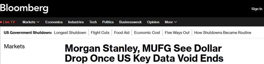0FX168财经报社(亚太)讯 顶尖投行外汇策略师表示,美国政府停摆掩盖了劳动力市场结构性疲软的信号,一旦数据开始陆续公布,这些疲软信号将拖累美元走低。 (截图来源:彭博社) 由于政府 ...