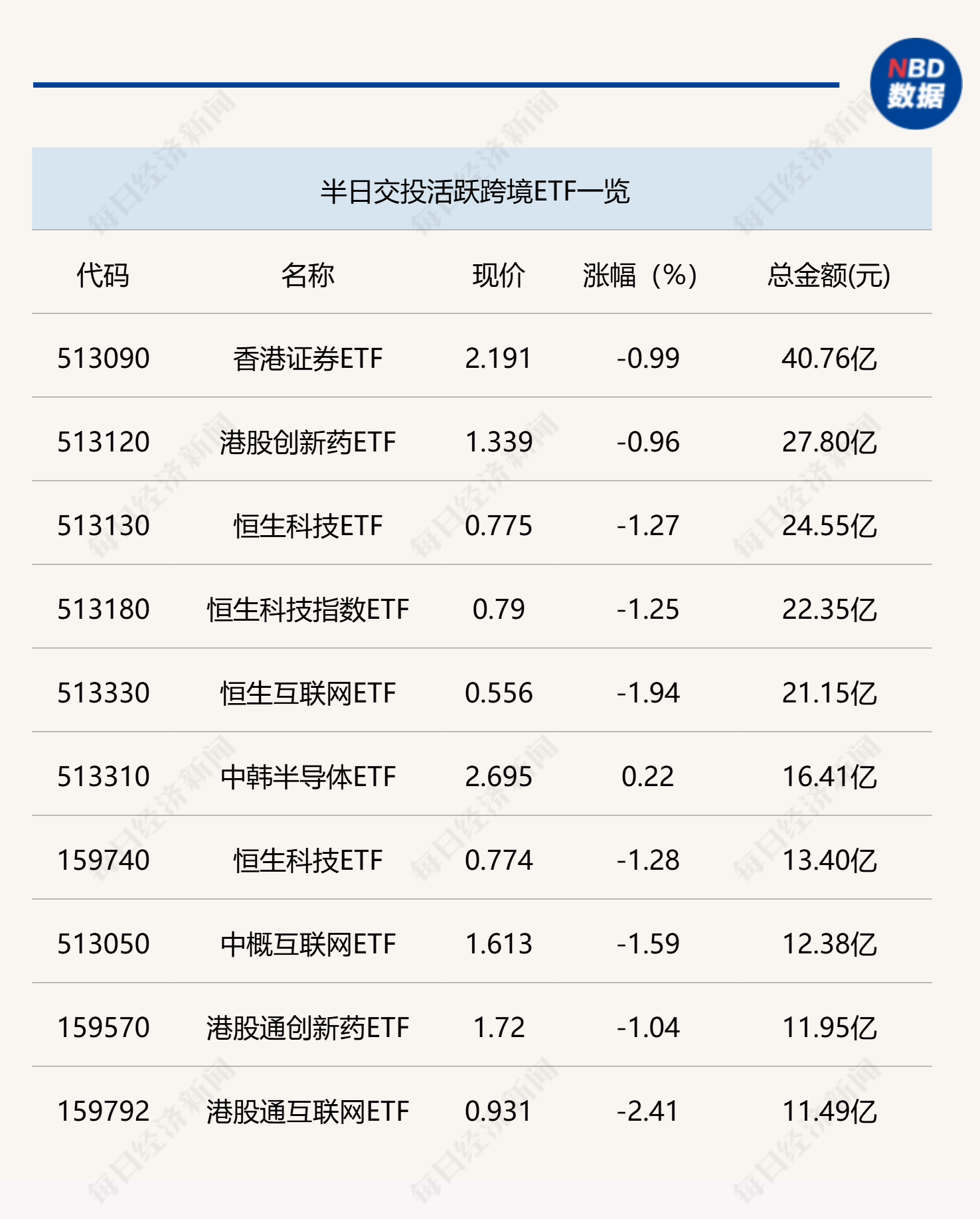 每经编辑|叶峰 今日上午,化工行业交投活跃,化工ETF(159870)半日成交达到12.36亿元,而光伏ETF(515790)同样获得资金关注,半日成交金额近10亿元。跨境ETF方面,今日跨境ETF普遍缩量,无一只ETF半日成交超过50亿元。