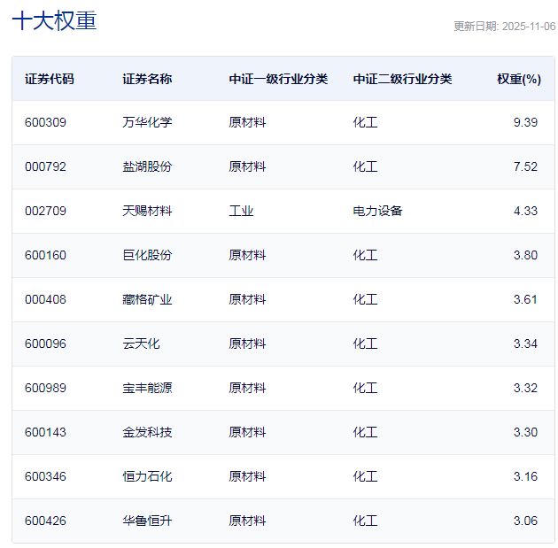 中证细分化工产业主题指数主要权重股 封面图片来源:每日经济新闻 |