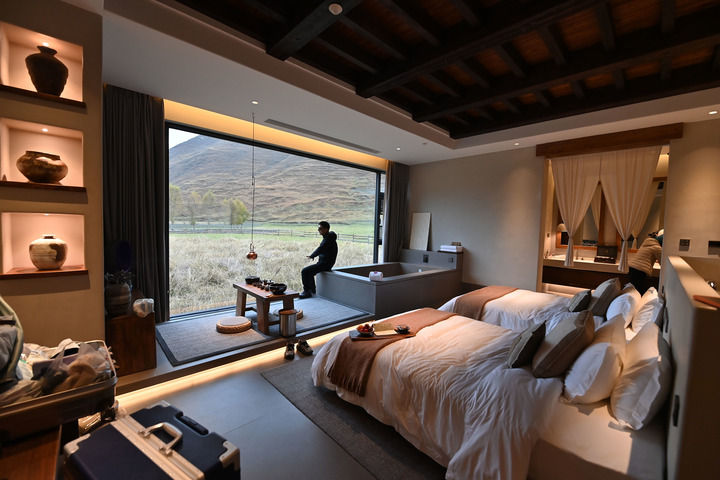 2025年10月31日,在四川省甘孜州康定市新都桥镇,来自浙江的游客在赞巴·明境民宿酒店的房间里休息。新华社记者 肖潇 摄 镇上的赞巴·明境酒店是甘孜州的五星级民宿之一,简约大气的装修、精心设计的特色文创,各处细节能让游客在高原上得到不输城市高级酒店的入住体验。 酒店客房主管拥中贝姆介绍,酒店旺季的入住率基本维持在90%以上,“我们为住客免费提供藏家拜访和手工糌粑制作等特色活动,让游客能够更好地体验当地的民情风俗与文化传承”。 “甘孜境内丰富的雪山、湖泊和森林等自然资源,已经成为吸引游客的重要名片。”甘孜州文化广播电视和旅游局局长刘洪介绍,经过30年发展,稻城亚丁、318中国最美景观大道、康定情歌故乡等,已经成为享誉国内外的旅游品牌,带动全州2025年1至10月累计接待游客突破4000万人次。 6月17日,四川发布《中共四川省委关于推进文化和旅游深度融合发展 做大做强文化旅游业的决定》。四川推出10条“跟着世运会游四川”入境游精品线路,串联大熊猫、乐山大佛、三星堆等全域世界级文旅资源。