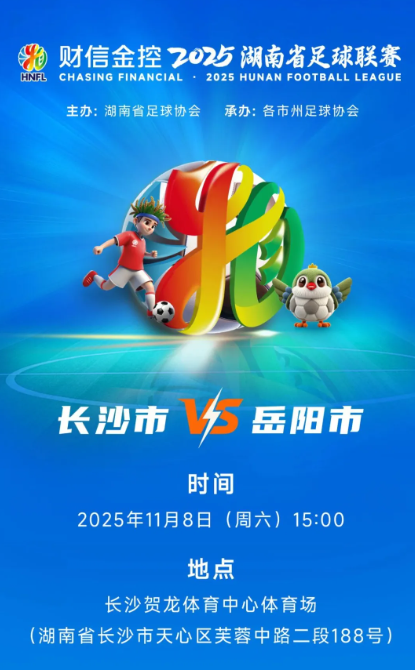 特别提醒 1. 比赛时间:11月8日的长沙VS岳阳比赛,开赛时间是下午3:00,请务必合理安排出行,提前入场。 2. 大雨预警:根据天气预报,比赛日长沙将有大雨,请各位球迷务必携带雨具(雨衣最佳),注意防滑保暖。 |