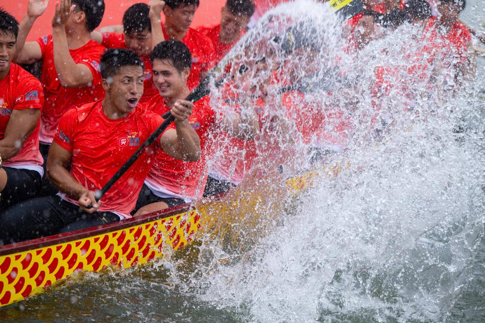 在香港仔海滨公园举行的龙舟竞渡大赛中,参赛选手奋楫争先(2023年6月22日摄)。 中国功夫享誉世界,在粤港澳大湾区,南派功夫发扬光大。一句南拳北腿道出南派功夫的精髓,咏春拳短桥窄马攻守兼备,洪拳刚劲有力手法多样,蔡李佛拳刚柔相济灵活多变……从大湾区出发,南派功夫走向世界,展示出中华文化的坚韧不拔、锐意进取、兼容并包。