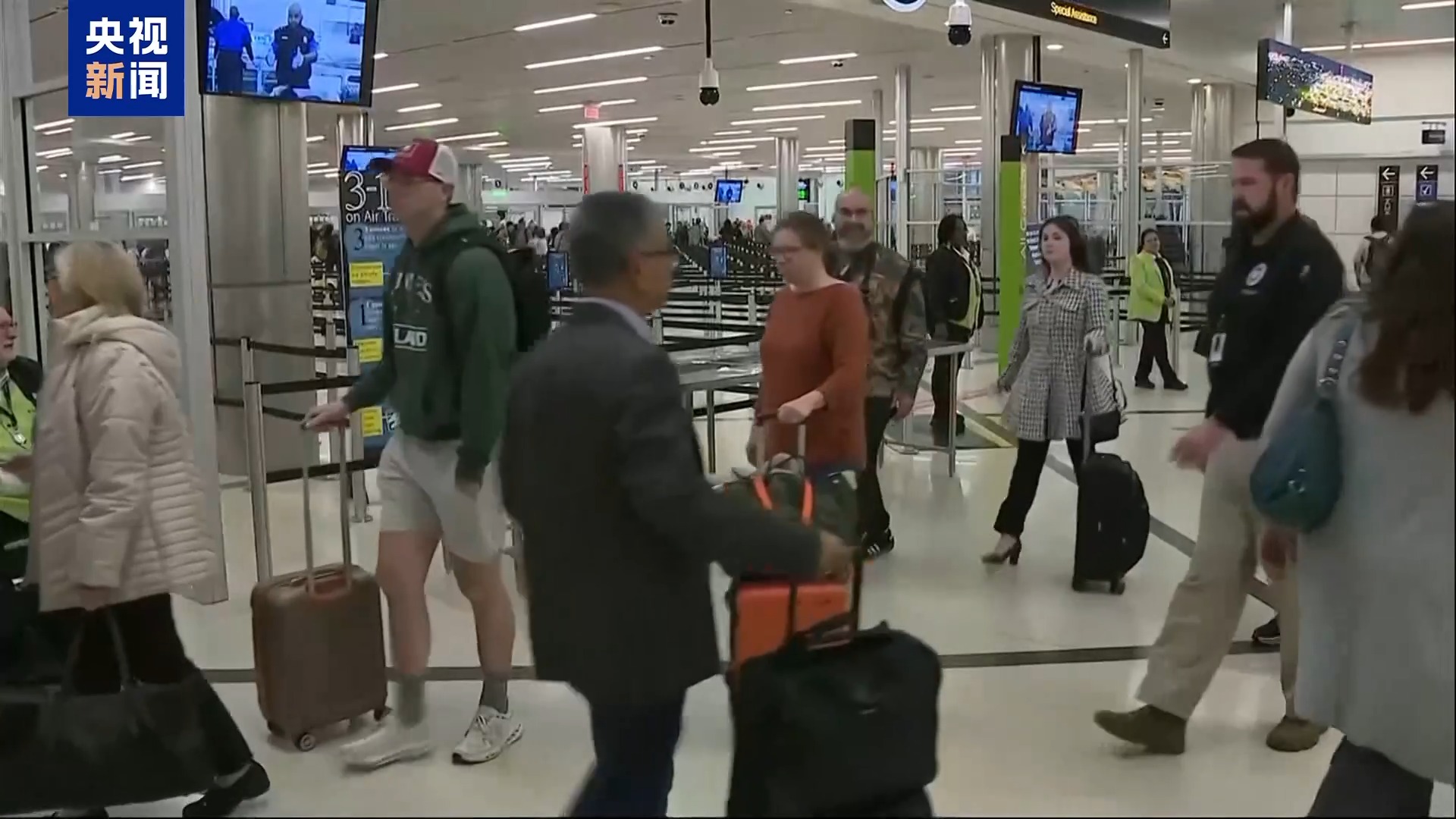 央视记者 许弢:这里是位于新泽西的纽瓦克国际机场,全美客流量最大的机场之一。我计划7日从这里飞往美国西部,但就在昨天下午,航空公司突然发通知说,我的其中一段航班被取消,只能改签经由其他城市转机前往目的地,但这样整个行程就比原来的行程多出了两个多小时。今天来到机场我也发现,乘客较之前有所减少。自政府“停摆”以来,纽瓦克国际机场受到的冲击尤为明显,特别是进入本周,这座机场的航班平均延误两到三个小时,希望今天能一切顺利。 在通过安检时记者也注意到,安检通道较之前关闭了不少,记者经过了两个安检区域,基本上每个区域就开放了一条安检通道。“停摆”期间,很多安检人员被迫无薪上班,很多人因压力过大而生病,或不得不从事兼职工作养家糊口,这导致请假人员增多。据悉,目前全美近一半主要空管设施人员短缺,其中纽约地区的人员缺口甚至达到近90%。