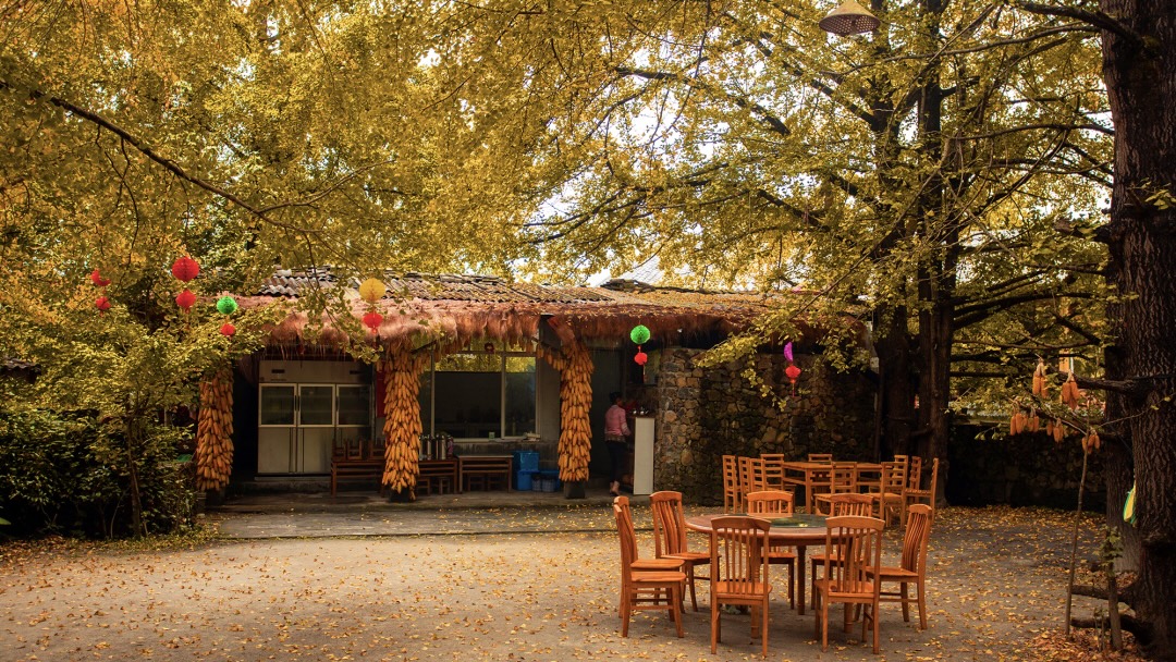 每年10月下旬至12月初,是银杏最美的时节。叶子渐渐变黄,翩然落满屋顶、小径与院落,整个村庄仿佛被温暖的金色包裹。住在银杏小院中,推窗即景,晨起便能感受与自然共呼吸的深秋诗意。