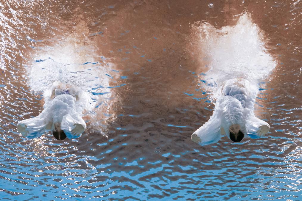 ↑11月2日,广东队组合全红婵/王伟莹在跳水女子团体赛双人10米跳台项目比赛中。新华社记者 夏一方 摄 “粤港澳一家亲”的氛围 浸透在赛事文化每处细节里 广东木棉花 香港紫荆花 澳门莲花 三朵花瓣交叠旋转 形成同心礼花的会徽图案 象征大湾区同心同源、交融互通