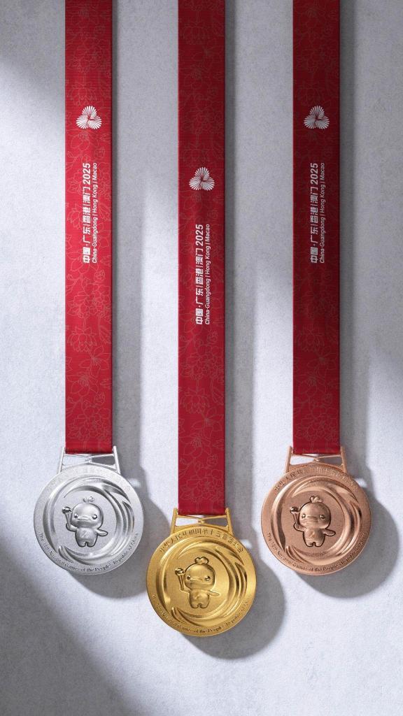 奖牌“同心跃”的挂环 加入了港珠澳大桥上 标志性的“同心结”设计 代表三地同心协力、共跃未来