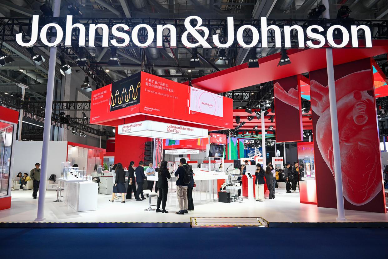 11月7日,观众在医疗器械及医药保健展区强生展台参观。强生是进博会八届“全勤生”。新华社记者 陈浩明 摄