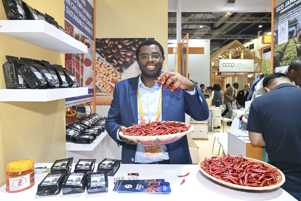 11月7日,卢旺达展商在第八届进博会展示干辣椒产品。新华社记者 陈浩明 摄 |