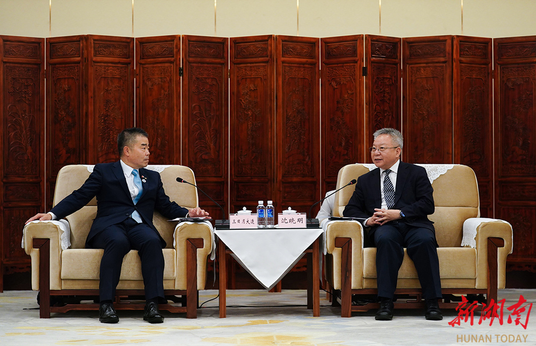 11月10日,省委书记沈晓明在长沙会见日本滋贺县知事三日月大造一行。