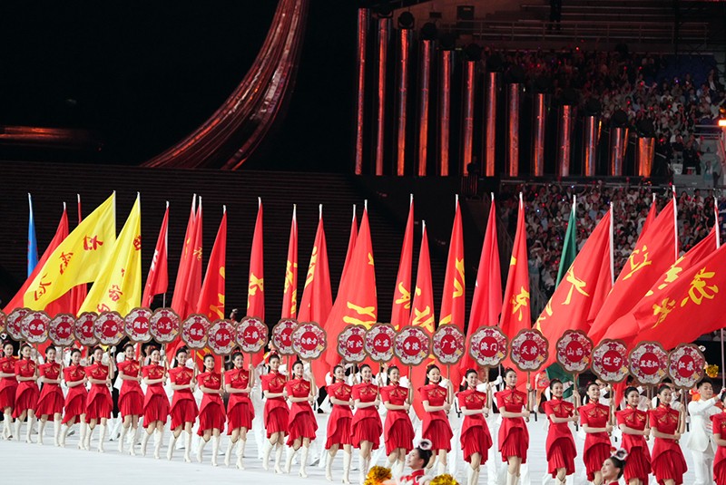 红网时刻新闻11月10日讯(记者 周雨墨 陈杰 符洹雨)11月9日晚,中华人民共和国第十五届运动会在广州隆重开幕。跟随红网记者的镜头,一起欣赏开幕式的精彩。
