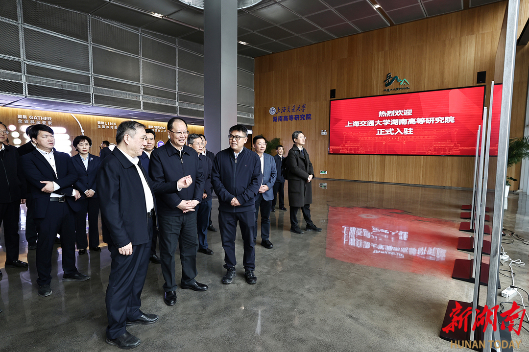 毛伟明、杨振斌在上海交大湖南高等研究院调研。 今年9月,湖南省政府与上海交通大学签署省校合作协议,共建上海交通大学湖南高等研究院和协同创新中心,携手在产业协同、科研创新、成果转化、人才培养等领域展开全面合作。项目采用“研究院+公司+科创飞地”的市场化运行机制,在长沙设立高等研究院,在上海设立协同创新中心,着力构建“技术研发在上海、成果转化到湖南”的科产融合新模式。 短短三个月来,双方已完成项目选址、研究论证、团队入驻过渡等工作,合作进展顺利。来到高等研究院的临时办公地点,毛伟明、杨振斌一行详细了解人才团队、课题研究等情况。得知已有AI+农业、智能制造、数智文创等10个课题入驻及一批项目落地时,毛伟明叮嘱有关部门要倒排时间进度,有力有序推进,确保高等研究院明年7月如期交付使用;要开设特事特办、好事快办“绿色通道”,为人才来湘提供贴心服务、暖心托举。