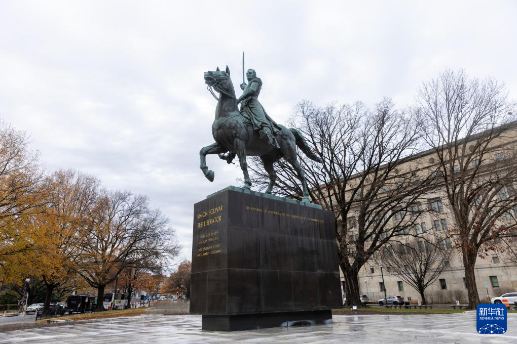这是12月2日在美国首都华盛顿拍摄的委内瑞拉民族英雄、南美解放者西蒙·玻利瓦尔的骑马雕像。新华社记者 胡友松 摄 |