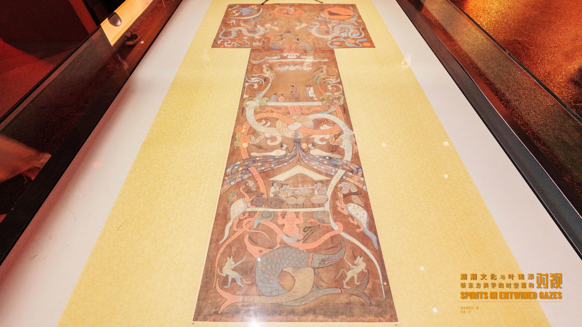 描绘了天上、人间与地下三层空间的T形帛画(央广网发 受访者供图) 在展览传播维度,“新”则体现为解读与呈现方式的创新,让“常研常新”的研究成果走出学术论文,走进公众视野。不论是“辛追夫人吃甜瓜”这类生活化的品读细节,还是“对视”展沉浸式、互动式的呈现形式,都让观众得以深度参与其中,在触摸历史的同时看见自我、听见自我、感受自我。这种创新,让马王堆研究的“新”不再局限于学术圈,而是转化为公众可感知、可参与的文化体验。 “我们倾其所有用最好的方式,让观众能够既清楚地看到文物本身,又不破坏文物本质。”采访行将结束时,申国辉的总结,道出了博物馆人与文物、与观众相处的初心。 “对视”展因持续高涨的观展热情而延期,本质是公众对“新形式解读传统文化”的热烈认可。湖南省博物馆马王堆汉墓及藏品研究展示中心的研究,与展览的创新相互呼应、相映成趣,也印证了马王堆“常研常新”的核心逻辑:“新”并非脱离传统的标新立异,而是以技术赋能研究、以艺术激活传播,让湖湘文化的精神内核,在当代持续被挖掘、被理解、被弘扬、被传承…… |