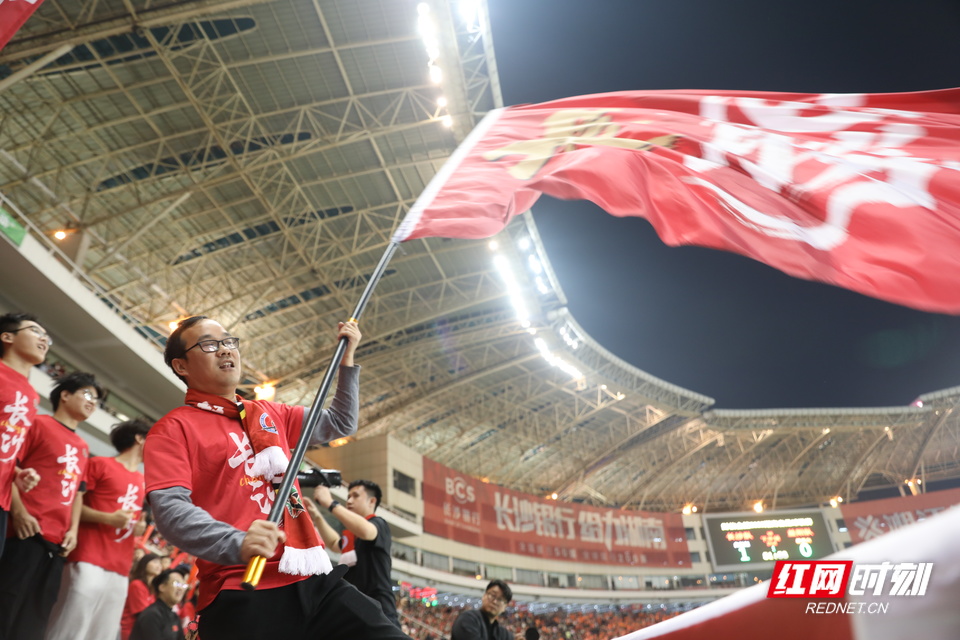 巨大横幅“架场”下,球迷振臂高呼。