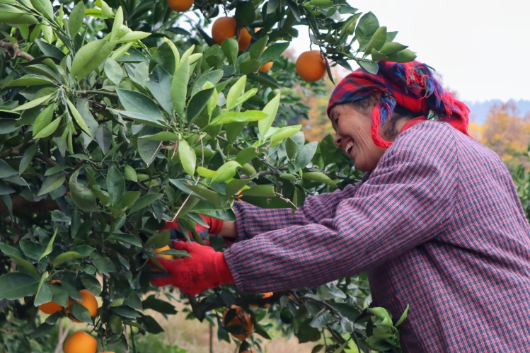 果农正在采摘脐橙 摄影 李媛 工厂里,又是另一番忙碌景象。湖南山之良科技有限公司,轰隆的鼓泡清洗机中,圆润饱满的脐橙在清凉的水流中翻滚,更显鲜艳明亮。顺着湖南山之良科技有限公司(以下简称“山之良”)董事长戴润平的视线,看向榨汁区域,满目橙黄。一分钟的时间里,2500个果子就已被鲜榨成汁。 忆及第一杯在此试榨成功的冷藏鲜榨崀山橙汁,戴润平仍是心潮澎湃。2024年5月23日,随着试榨成功,崀山脐橙实现果汁化生产,正式开启崀山脐橙产品多元化模式,走出了产业延链的关键一步。 激动之余,戴润平心中更深处的往事浮现。“我小时候,家家户户都种脐橙。”作为我国最早种植脐橙的地区之一,得天独厚的自然条件和富含各种微量元素的山地土质使新宁成为培植优质脐橙的理想区域,被誉为“中国脐橙之乡”。“在我们新宁,随便种,橙子都好吃。” 一份甜蜜的味道,让戴润平的父母也有了期待,精心栽下数十亩脐橙树。“但那时的橙子,卖个好价钱全看运气。”金黄的脐橙林海,承载着数代果农“靠天吃饭”的忧喜。虽有“天时地利”,但也许是缺“运气”,在一棵果树三年挂果、五年丰产的漫长周期里,戴润平父母曾两次忍痛将进入丰产期的果园推平。 父辈的遗憾,戴润平记忆犹新,并逐步在实践探索中弥补。“我们这个工厂,首先起到了一个关键的‘兜底’作用。”在他看来,鲜果行情不好的时候,工厂把原料都“兜”起来,就不怕农户血本无归。“而且通过标准化的精深加工,我们能把脐橙的价值最大限度地留在本地。” 把柑橘“吃干榨尽”,在山之良,榨汁剩下的柑橘皮渣变成了橙皮丁、香精油等“抢手货”。正如戴润平所说“没有东西是废物,只是没被利用起来。” 戴润平记忆里被推平的果园,如今已是松树林,但在新宁广袤的土地上,正有更多的果农栽种起希望。